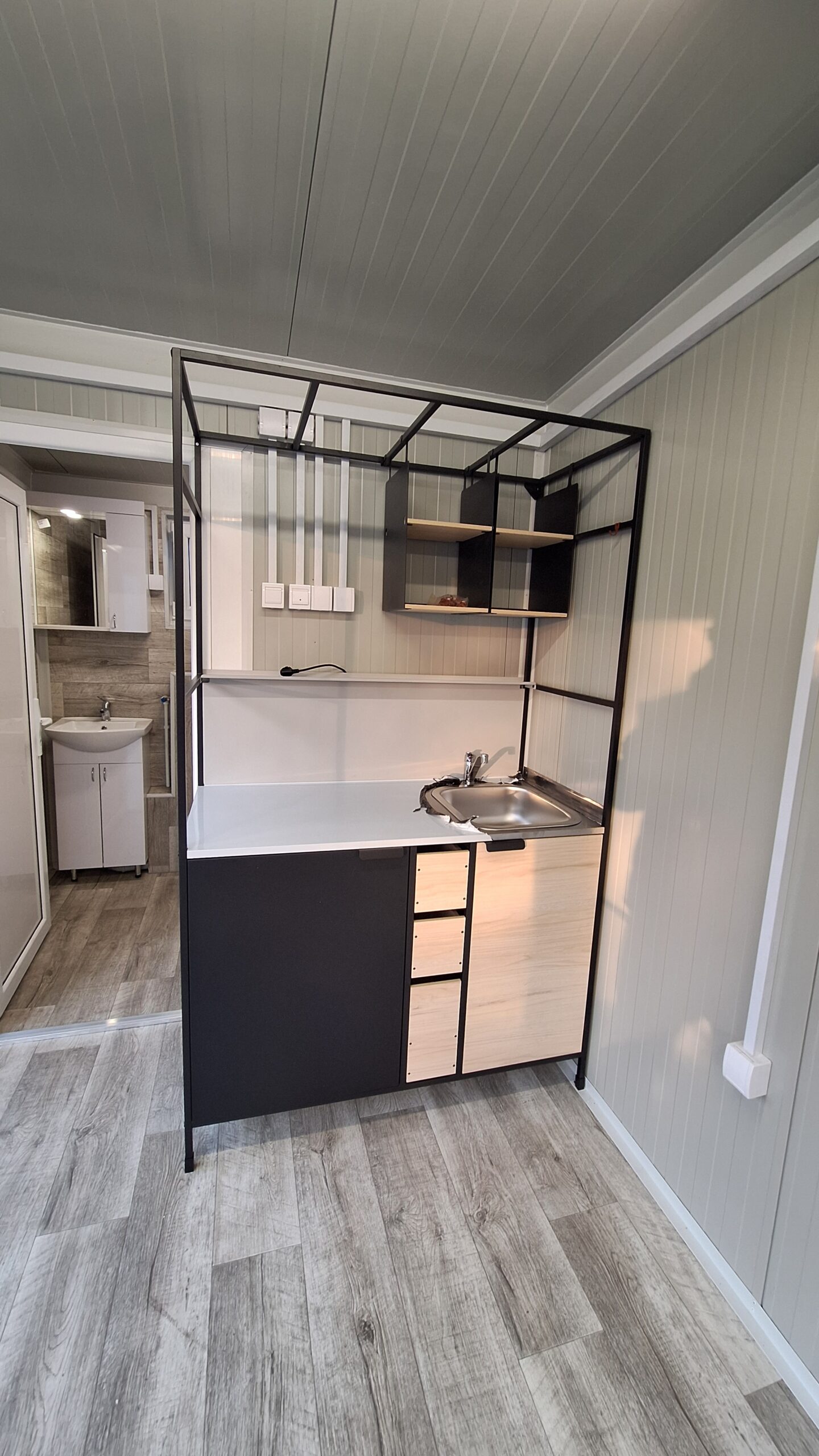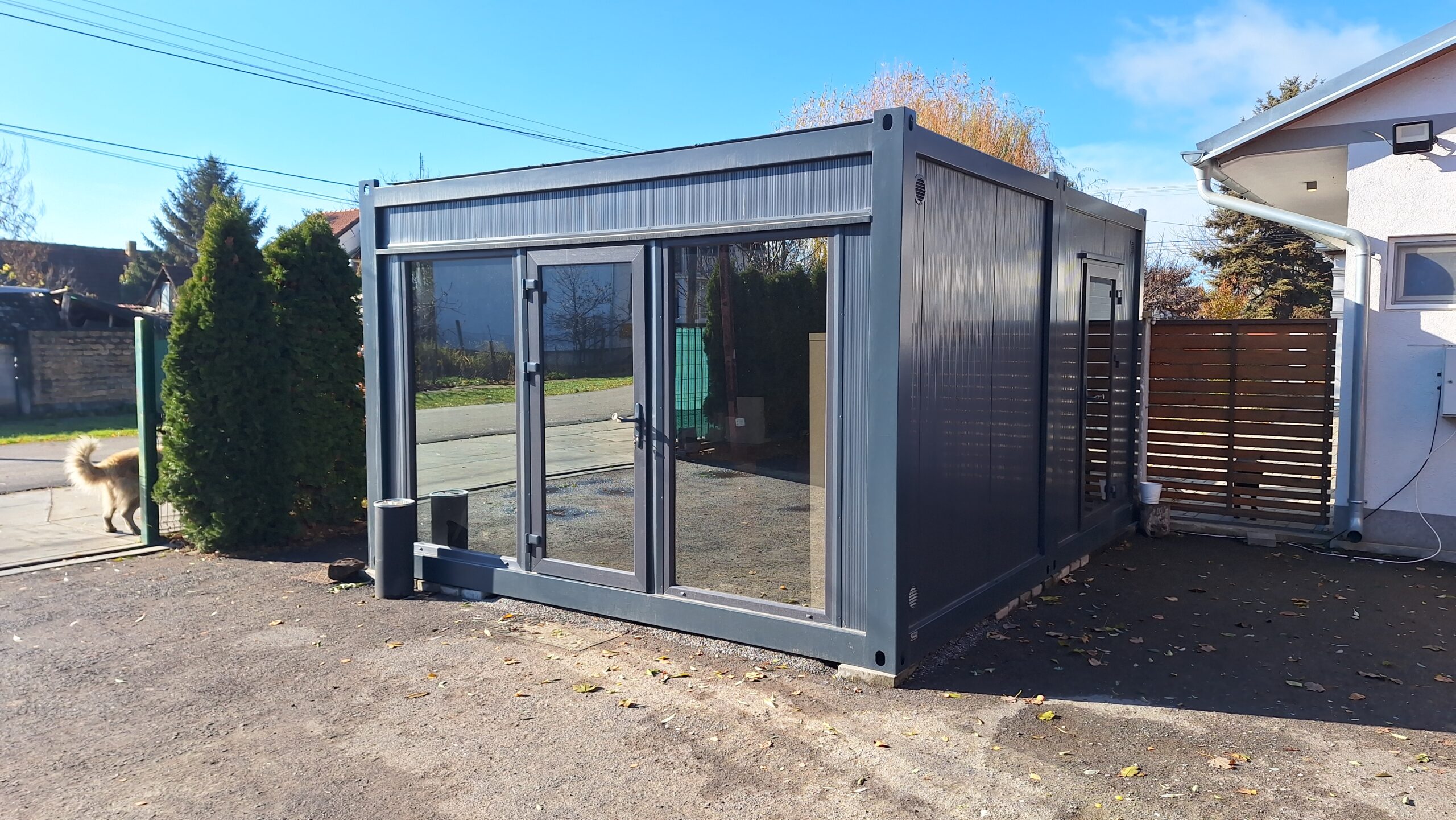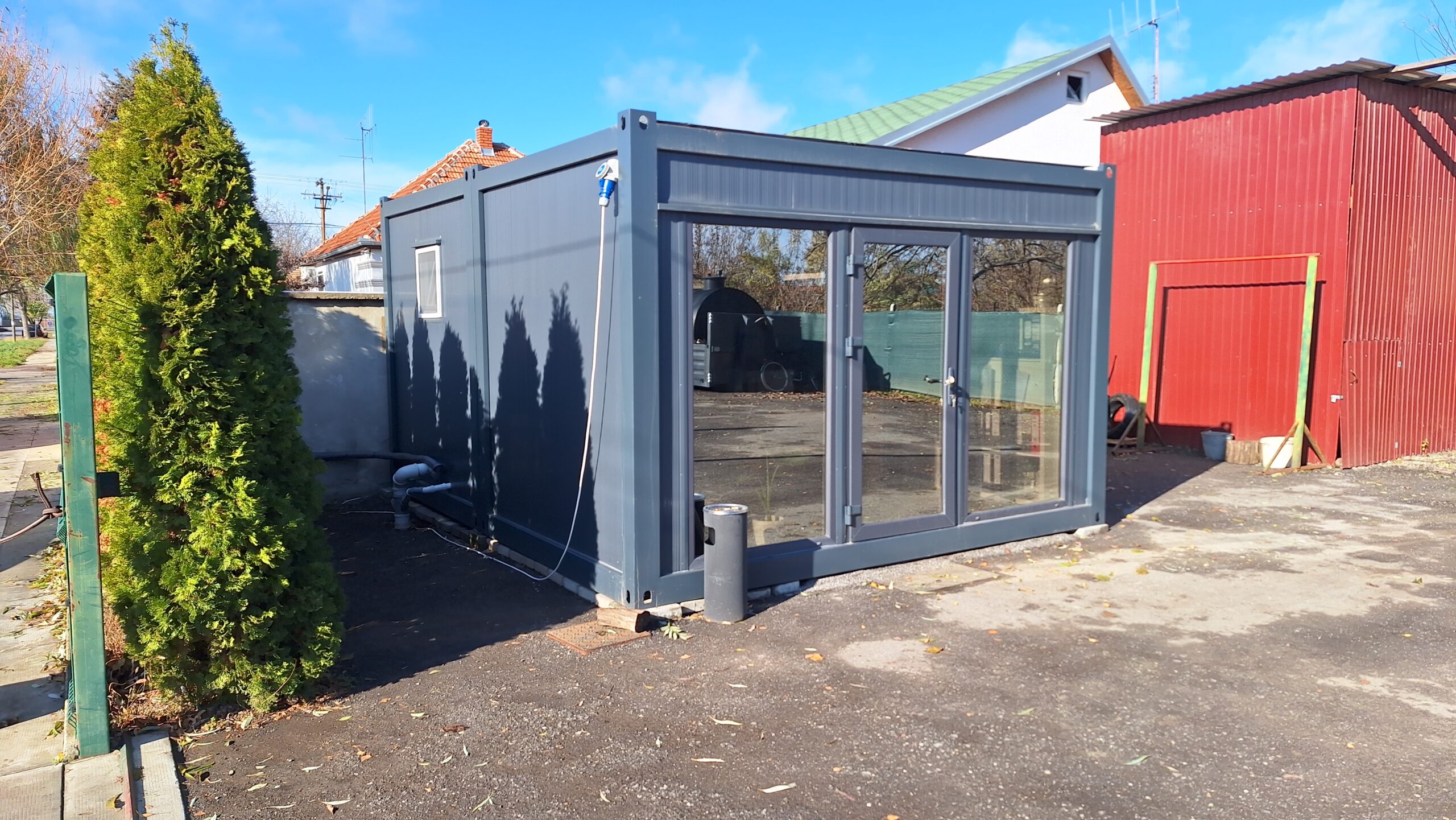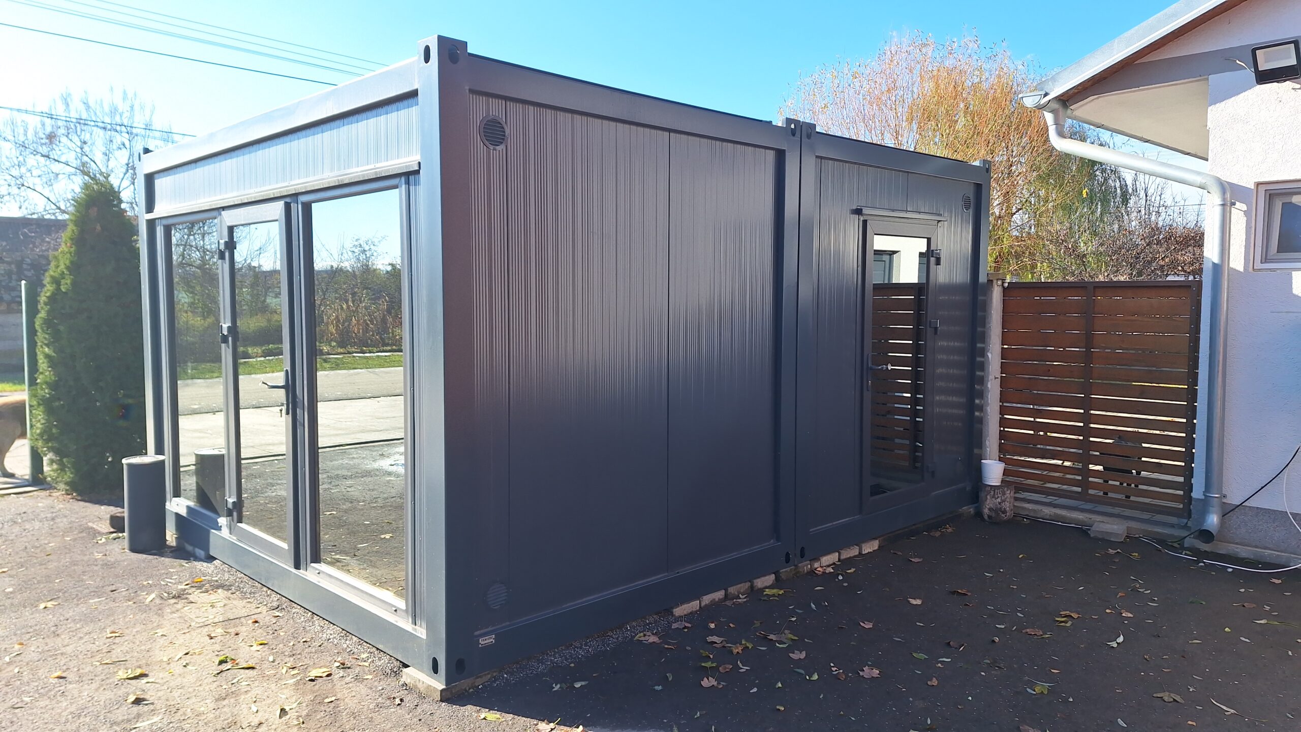 Kontejner u potpunosti izveden u elegantnoj antracit boji sa antracit stolarijom, predstavlja idealno rešenje za različite poslovne i komercijalne potrebe. Modernog izgleda i vrhunskog kvaliteta, osmišljen je da zadovolji najviše estetske i funkcionalne standarde.
